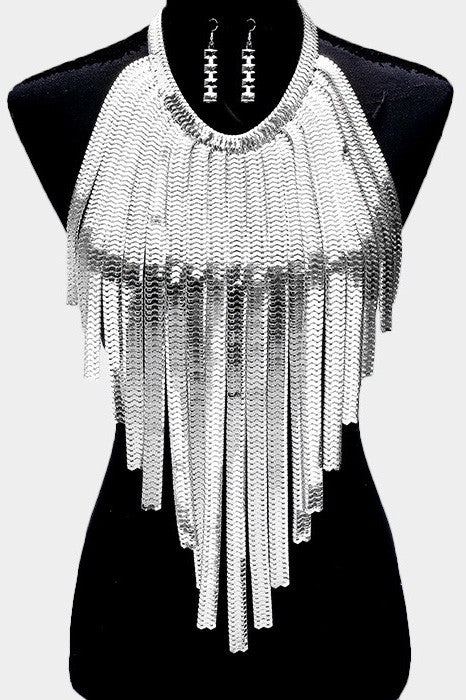 Necklace Size : 20" + 3" L Decor Size : 16" L Earring Size : 2.5" L Long Drop Wide Snake Metal Chain Metal Necklace